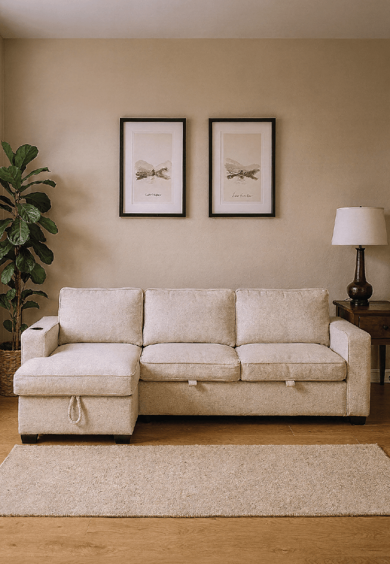 Introducing the Alto Pull-Out Sofabed, a compact, functional Sofabed perfect for a small apartment! Constructed of Eucalyptus wood, structured with support springs, and upholstered with Polypropylene Fiber, this darling Sofabed features a delightful pull-out mechanism, a storage trunk to store blankets and pillows, USB ports for convenient charging of electrical devices, as well as a handy cupholder!