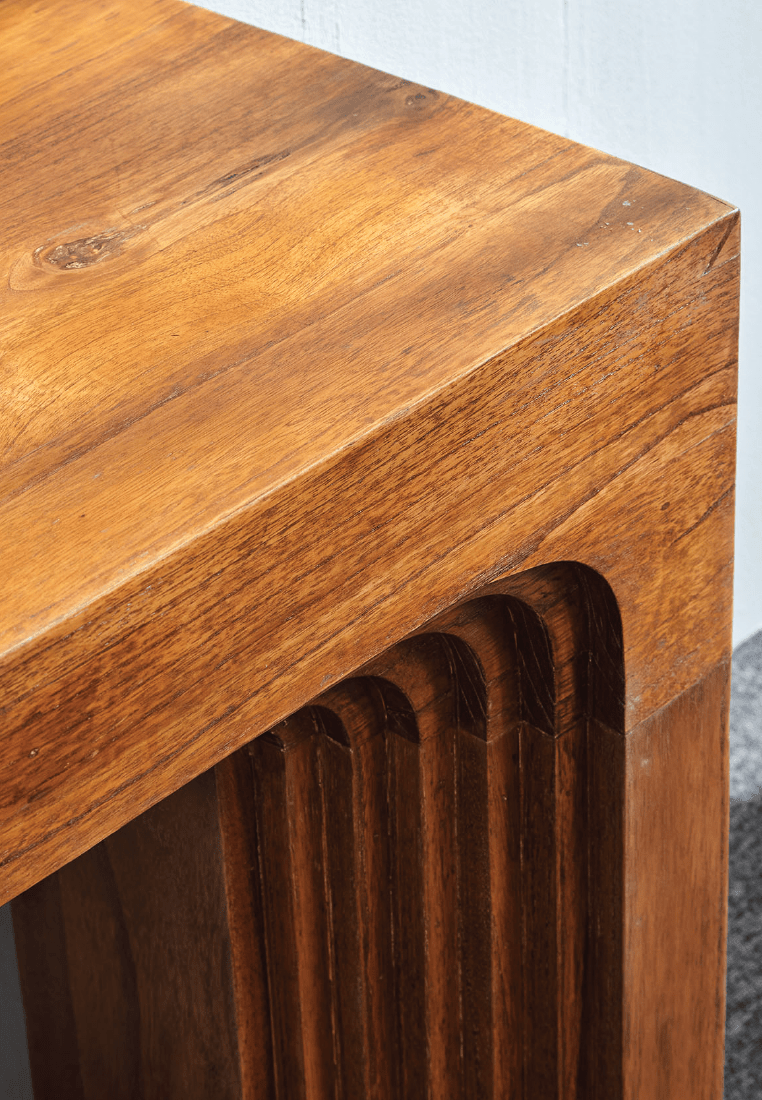 When style meets craftsmanship; presenting the Ardelle Console Table. Bringing warmth and elegance to your home with its clean lines and timeless design, the Ardelle Console Table is perfect for entryways, living rooms, or as a statement accent. Bold layered edges crafted from solid Mindi wood, showcasing strength, texture, and artistry expresses itself in every curve.