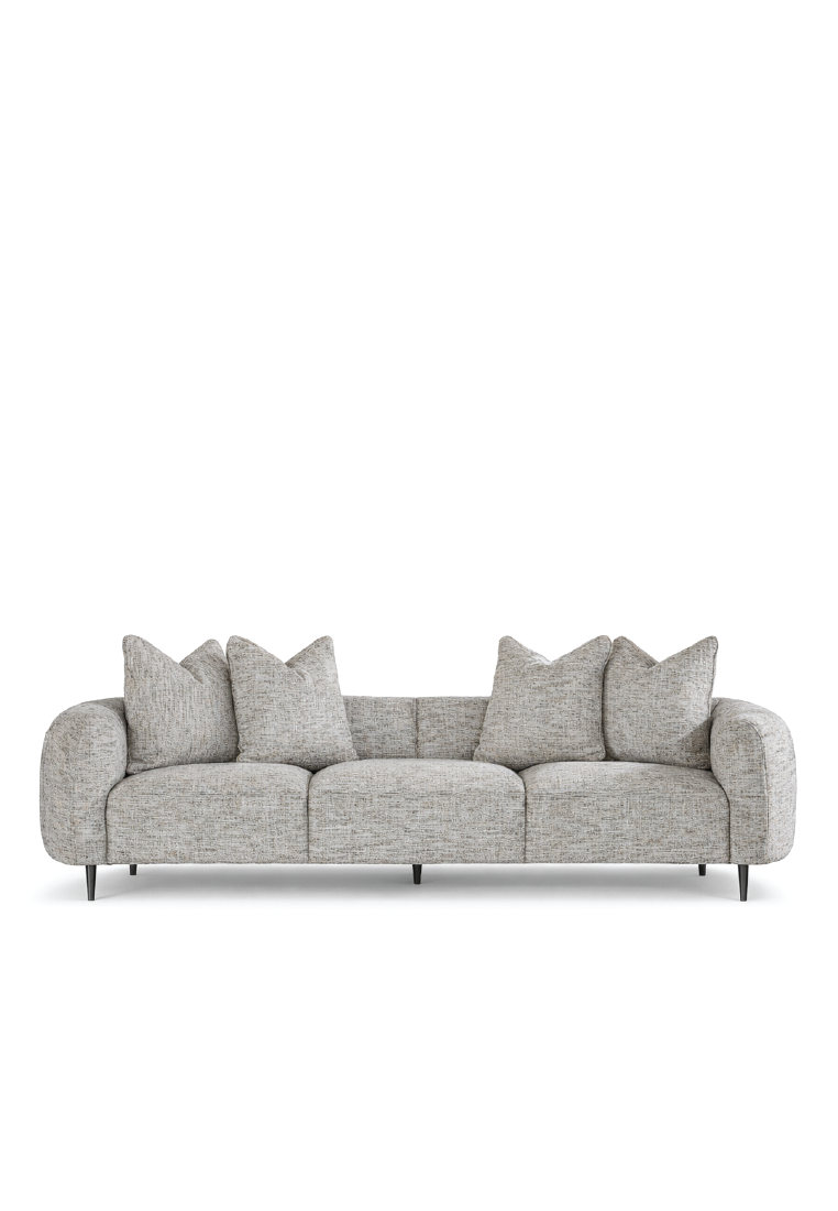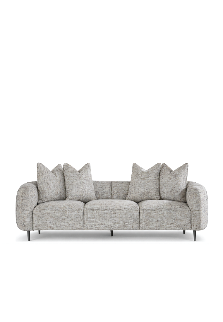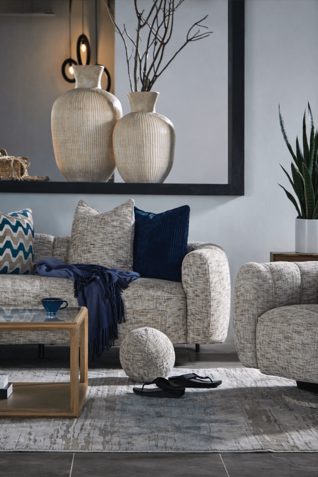The Mirage Sofa brings a crisp contemporary vibe with its low-profile silhouette and clean, grounded presence that instantly modernizes a room. Vertical channel upholstery adds a tailored rhythm and subtle texture, giving the sofa a sleek, design-forward look that still feels inviting for everyday lounging.