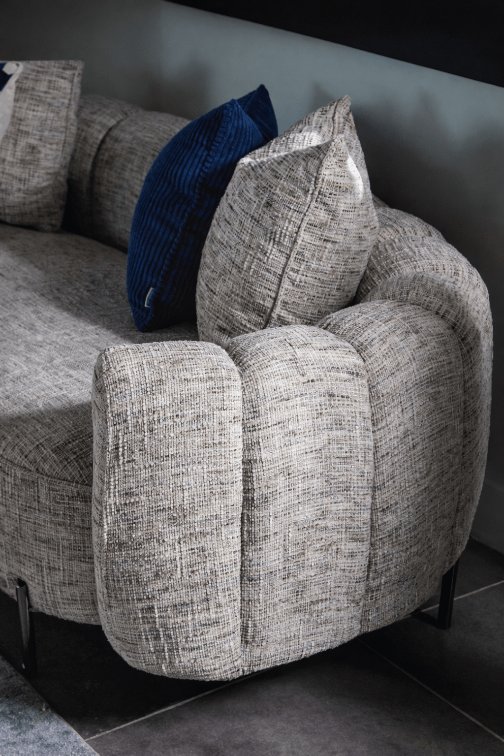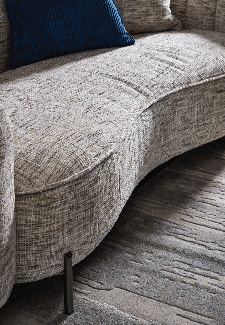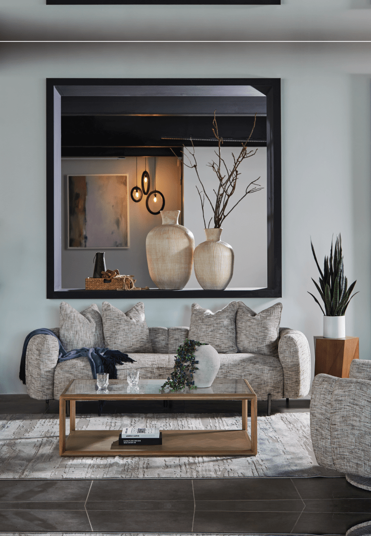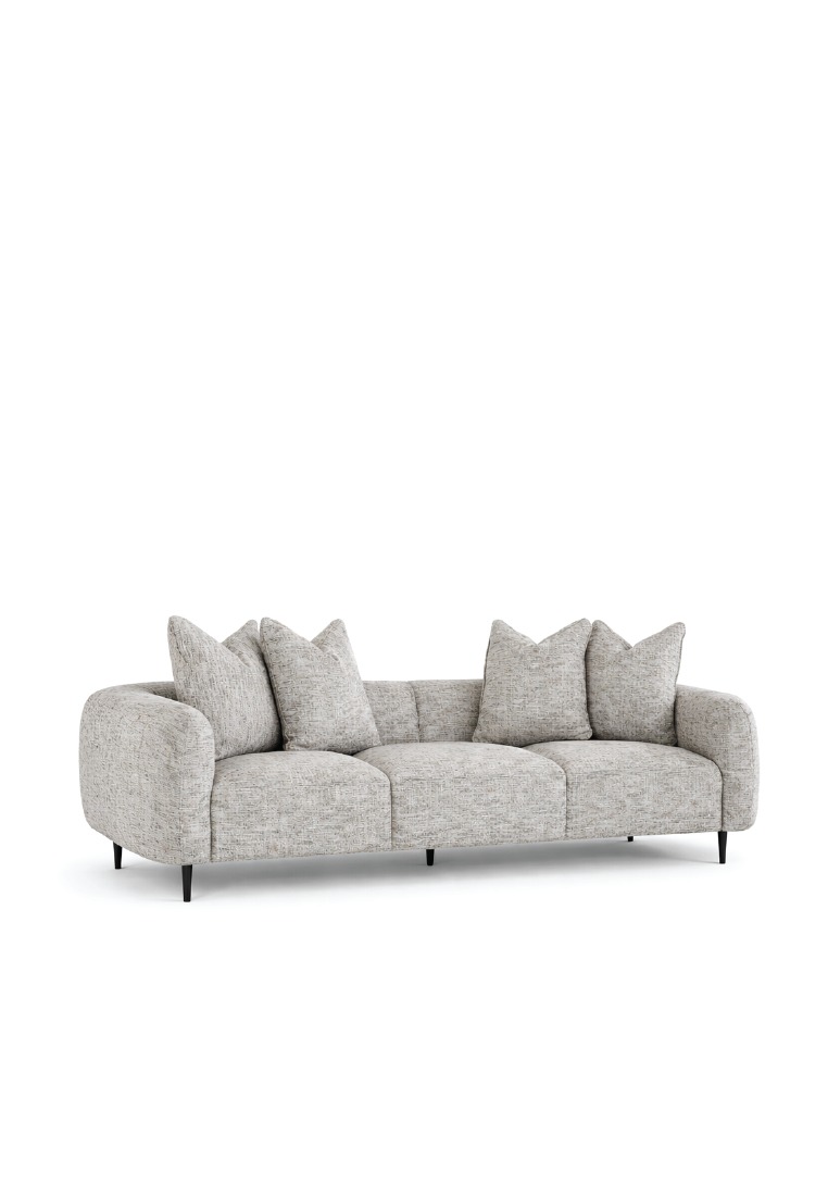 The Mirage Sofa brings a crisp contemporary vibe with its low-profile silhouette and clean, grounded presence that instantly modernizes a room. Vertical channel upholstery adds a tailored rhythm and subtle texture, giving the sofa a sleek, design-forward look that still feels inviting for everyday lounging.