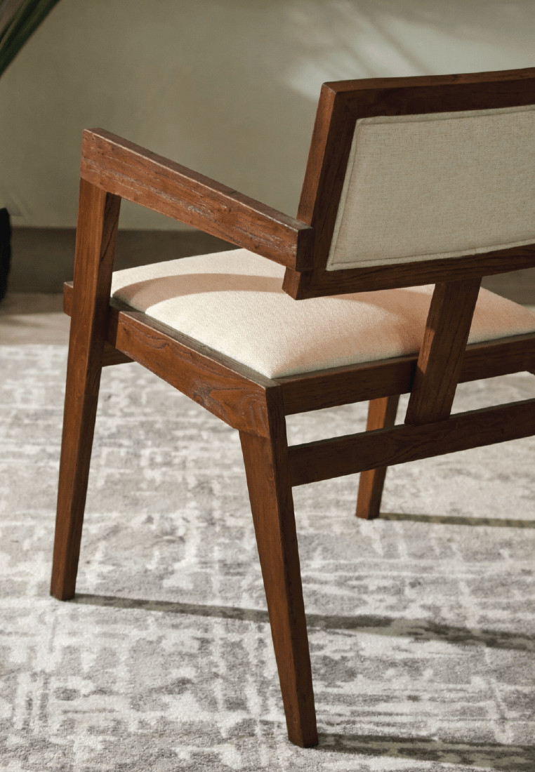 The Neka Accent Chair stands out with its distinctive, architectural silhouette, framed in solid wood for a confident, sturdy presence. Finished with bright, light-toned upholstery, it brings an airy pop of freshness while staying supportive and grounded, perfect as a statement seat in any corner.