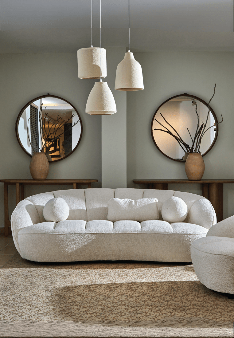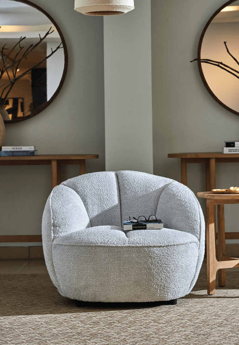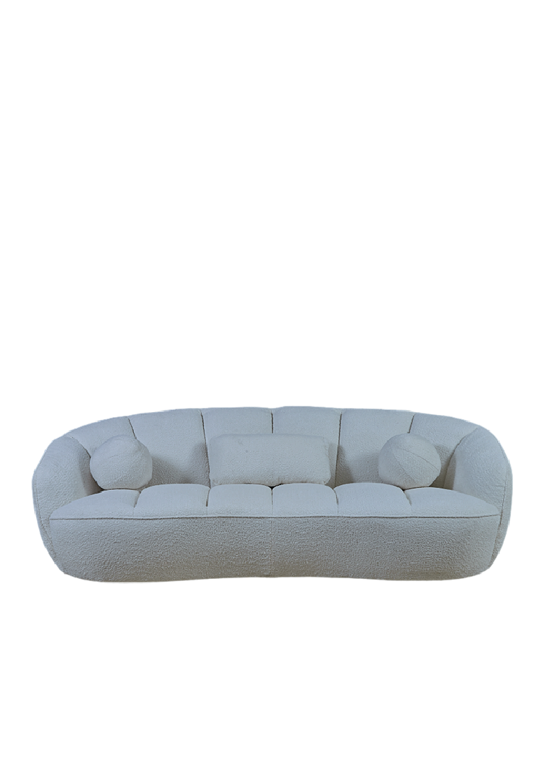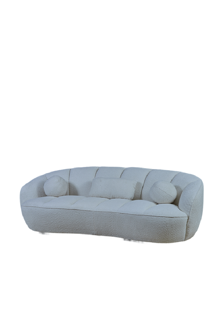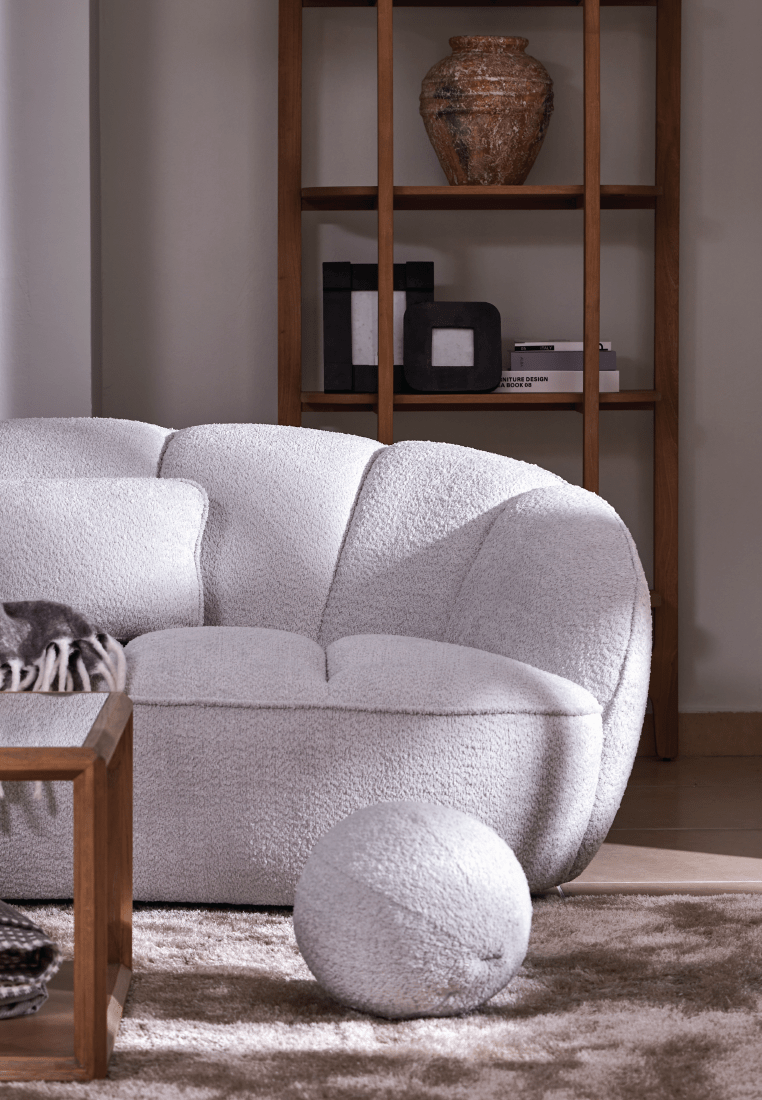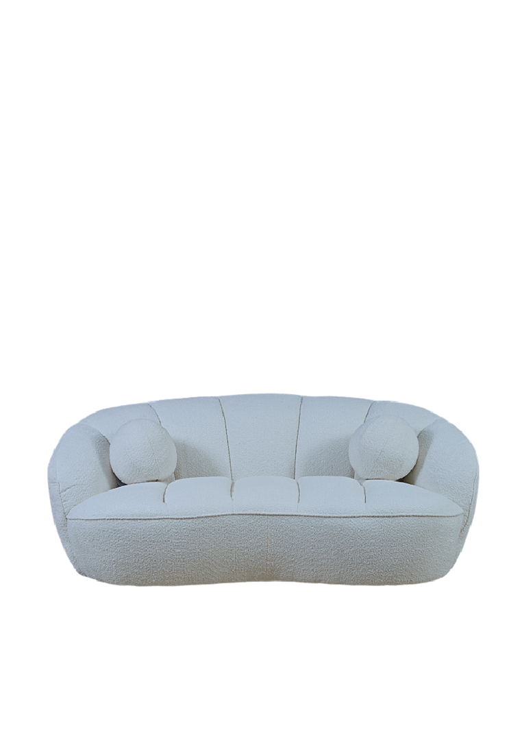 The Oslo Sofa features a delightfully organic shape, upholstered in plush bouclé with a channel tufted backrest. A cozy addition to our expanded Modern Farmhouse collection, introduce some curving profiles into your home with the Oslo Sofa! Offered in two neutral fabric colors, the Oslo 1-Seater Sofa is perfect for reading nooks or as a statement accent chair in your living room!