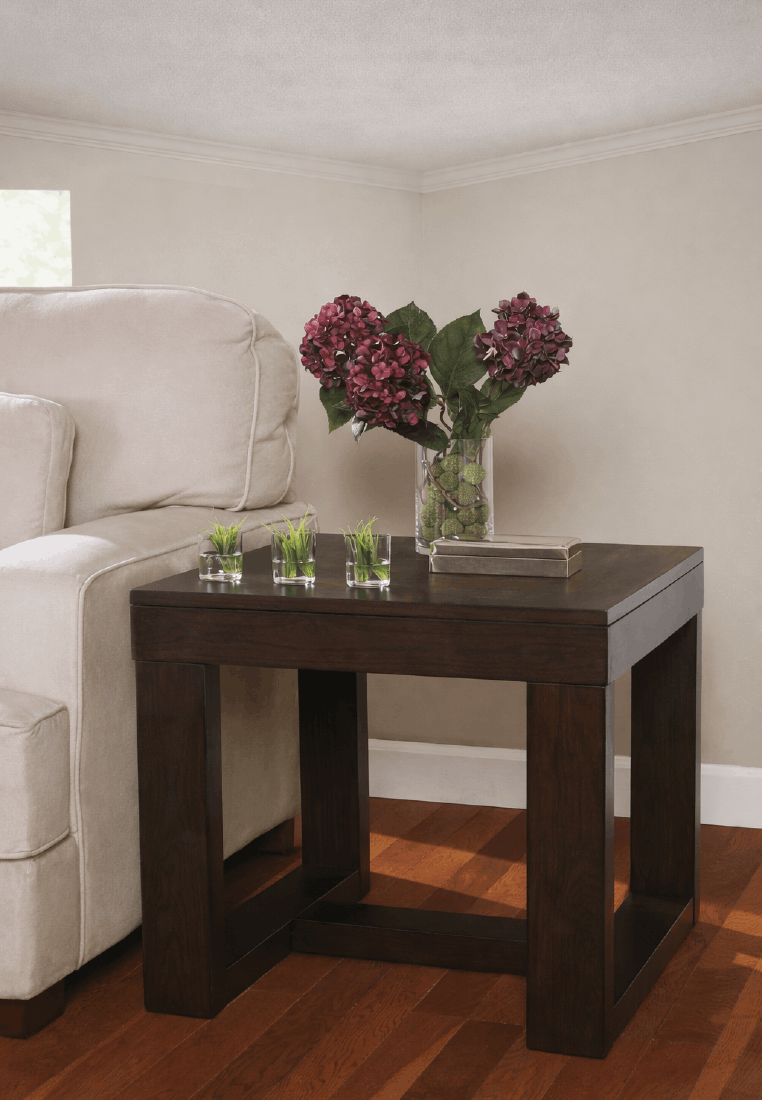 Drawing from the beauty of clean-lined mid-century design, this square end table feels right at home in today’s modern spaces. Oil-rubbed distressing on the decadent finish adds a layer of beauty and character.