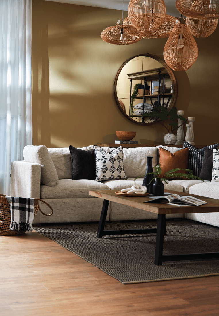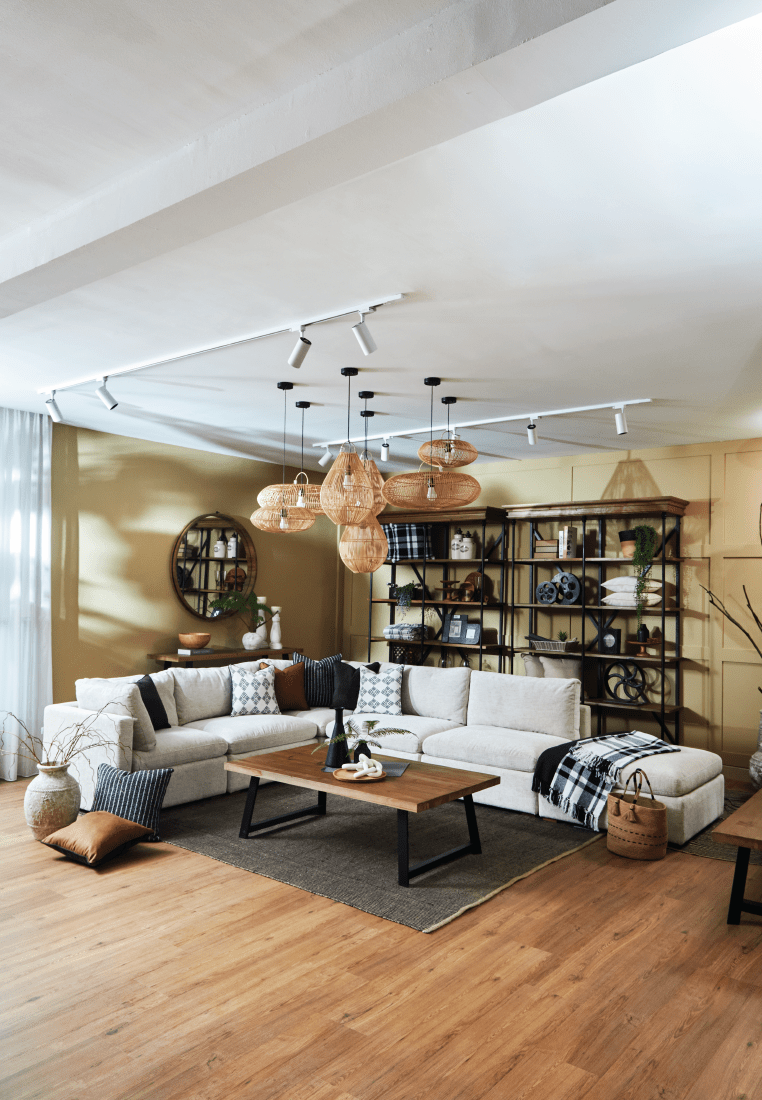 The Yannic Sectional Sofa boasts a sleek and modern design, perfect for large living spaces. Its modular layout offers customizable seating arrangements to suit any room. Upholstered in neutral tones, it combines comfort and versatility with timeless elegance.