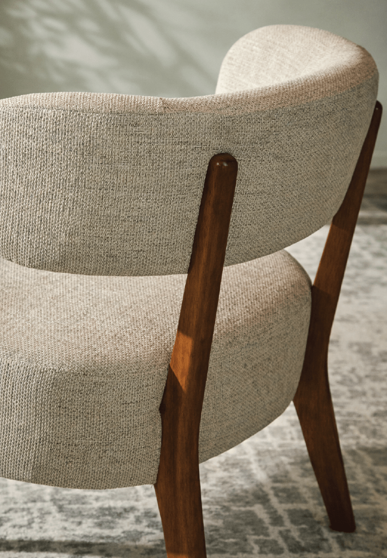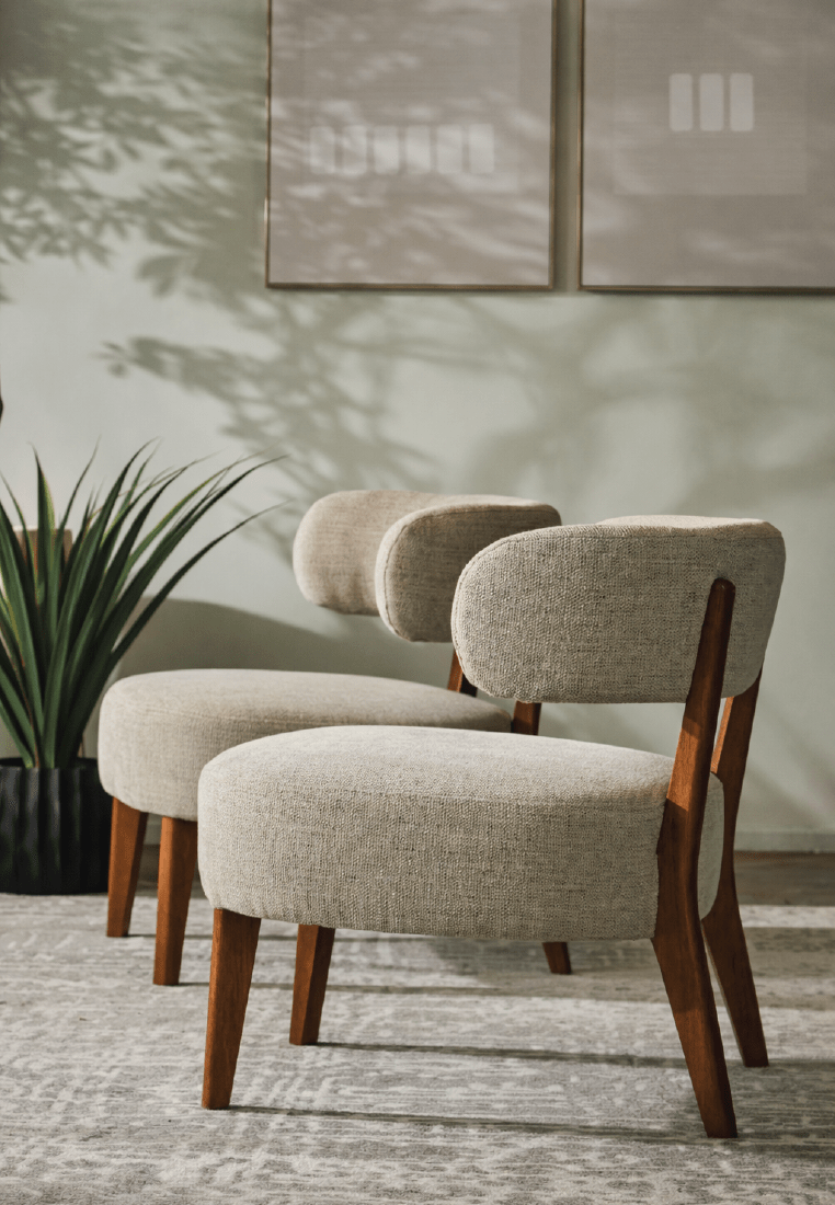 Upholstered in a soft, inviting fabric, the Yucca Accent Chair features smooth, organic curves that bring a refined sense of comfort to modern interiors. Its sculptural silhouette makes it a statement piece, adding understated character and visual softness to any living space.