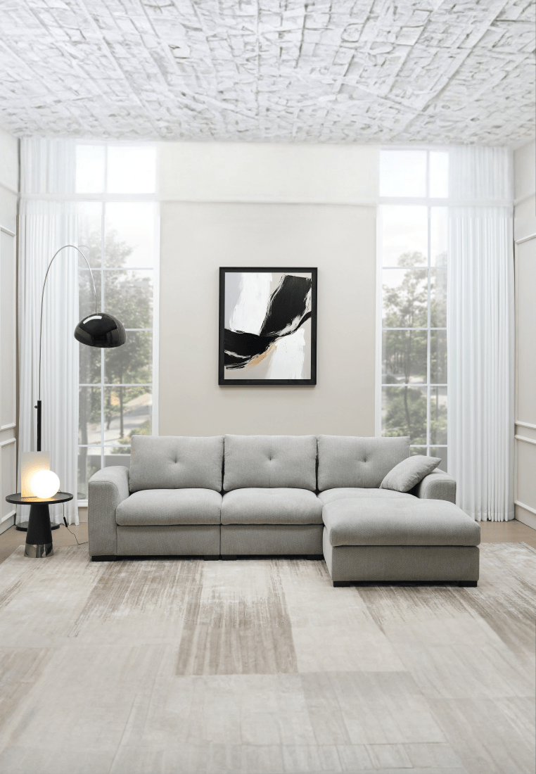 Introducing the Luxeo L Shape Sofa! Designed to bring both comfort and elegance into your living room. With its spacious seating, plush cushions, modern silhouette, and stylish chaise, it’s perfect for family gatherings, cozy movie nights, or simply relaxing after a long day.